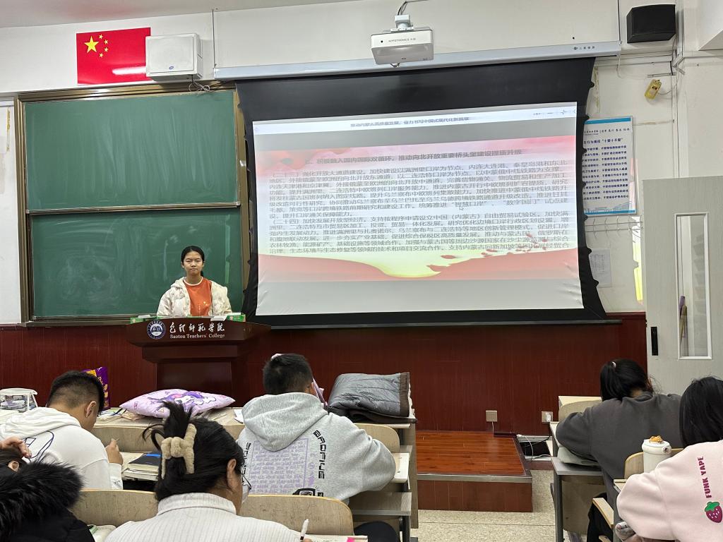 把内蒙古建设成为我国北方重要生态安全屏障、祖国北疆安全稳定屏障、国家重要能源和战略资源基地、国家重要农畜产品生产基地、我国向北开放重要桥头堡,是习近平总书记和党中央赋予内蒙古的战略定位和重大责任。在此次专题团日活动中,各团支部组织青年学生集体学习了《内蒙古自治区全方位建设模范自治区促进条例》等条例。通过学习,同学们倍感振奋,更有力量将个人梦想与家乡建设紧密结合起来。