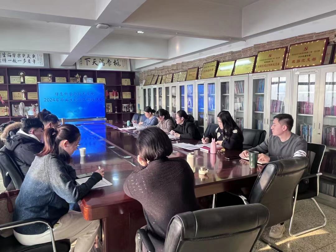 12月26日,信息学院在710会议室组织召开了2024届毕业生第四次就业工作推进会,学院就业工作领导小组成员及校企合作班班主任参会,会议由党总支副书记董海燕主持。