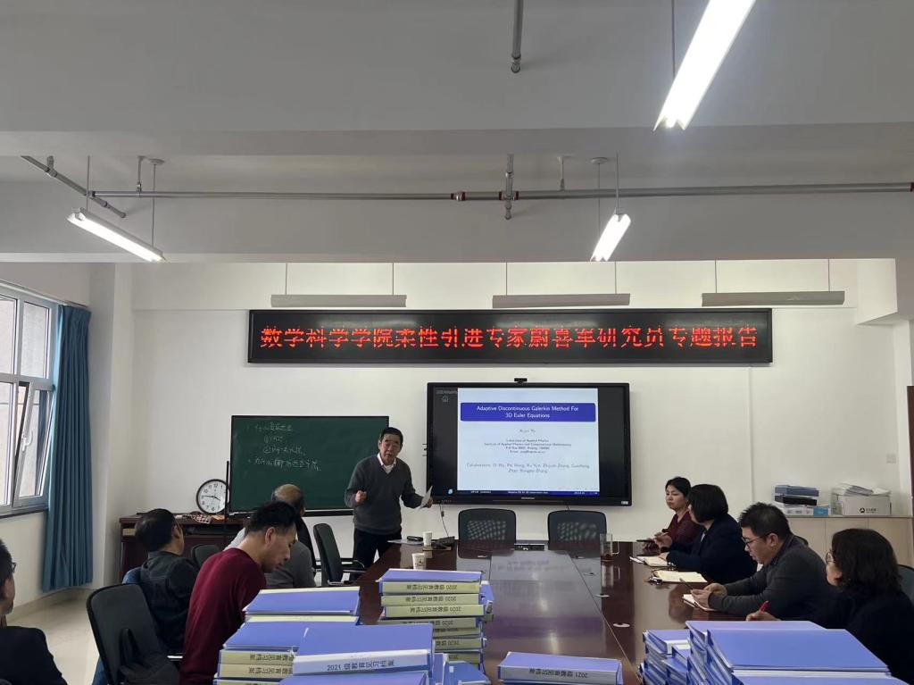 1月19日下午,我院柔性引进专家蔚喜军研究员莅临我院,并做了题为“Adaptive DiscontinuousGalerkinMethod F3D EulerEquation”的专题报告。报告由王丽花副院长主持,学院全体教师参与并认真聆听了报告。