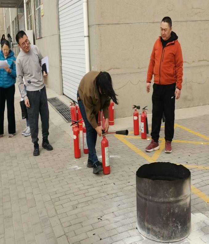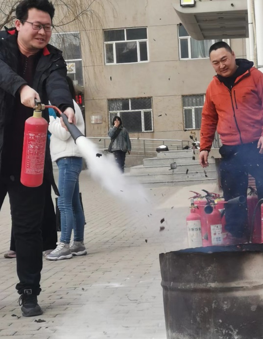 培训由院长王芳主持,邀请保卫处张晓刚、高峰一行做培训,物理学院全体教师参加。培训中,主讲高峰首先例举从全国范围内影响较大的火灾事故,给教师生动形象地讲述生活中如何预防火灾,及时报警、如何扑救初期火灾,正确使用消防器材,如何正确逃生等消防知识。随后,组织教师们在物理楼和生化楼之间的空地进行消防演练,实操灭火器灭火,熟练掌握了不同灭火器的操作方法。
