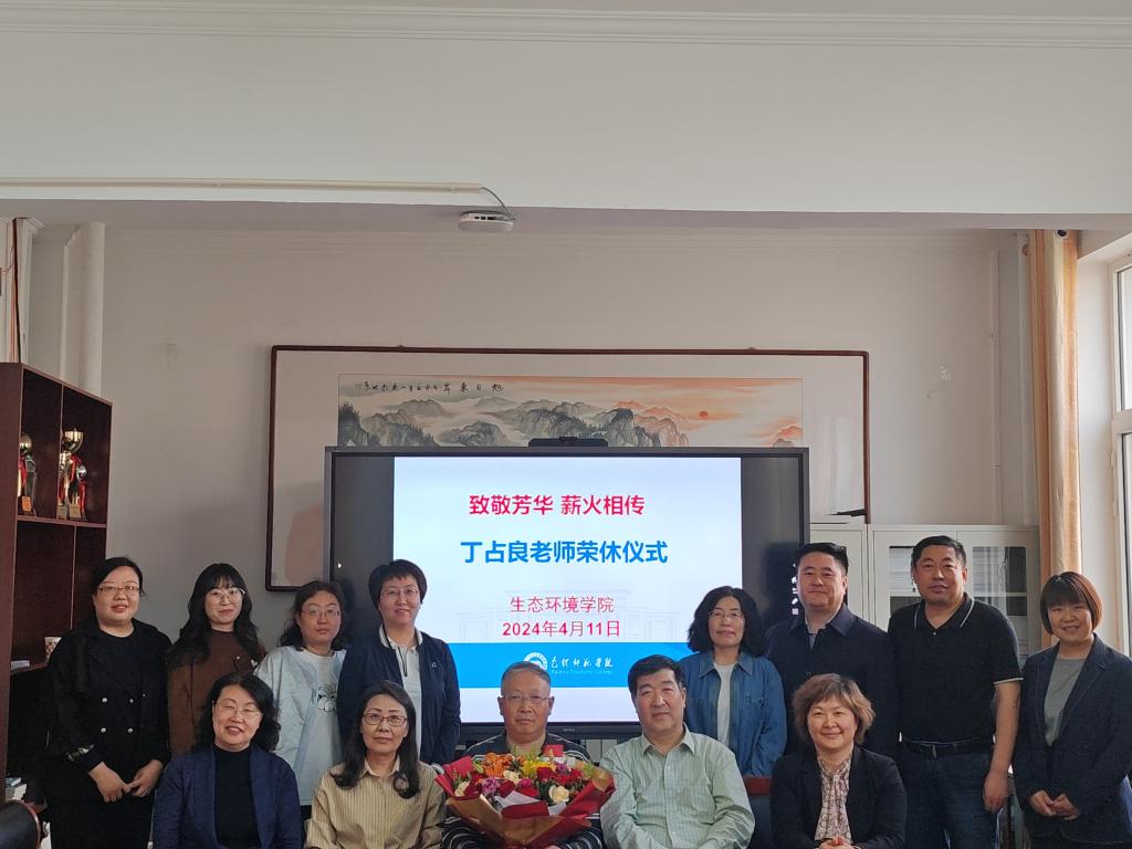 4月11日下午,生态环境学院在齐志楼419会议室举行教师荣休仪式,向2024年光荣退休的丁占良老师表达敬意与感谢。学院领导班子成员,荣休教师丁占良以及教职工代表参加。仪式由学院党总支书记朱丽主持。