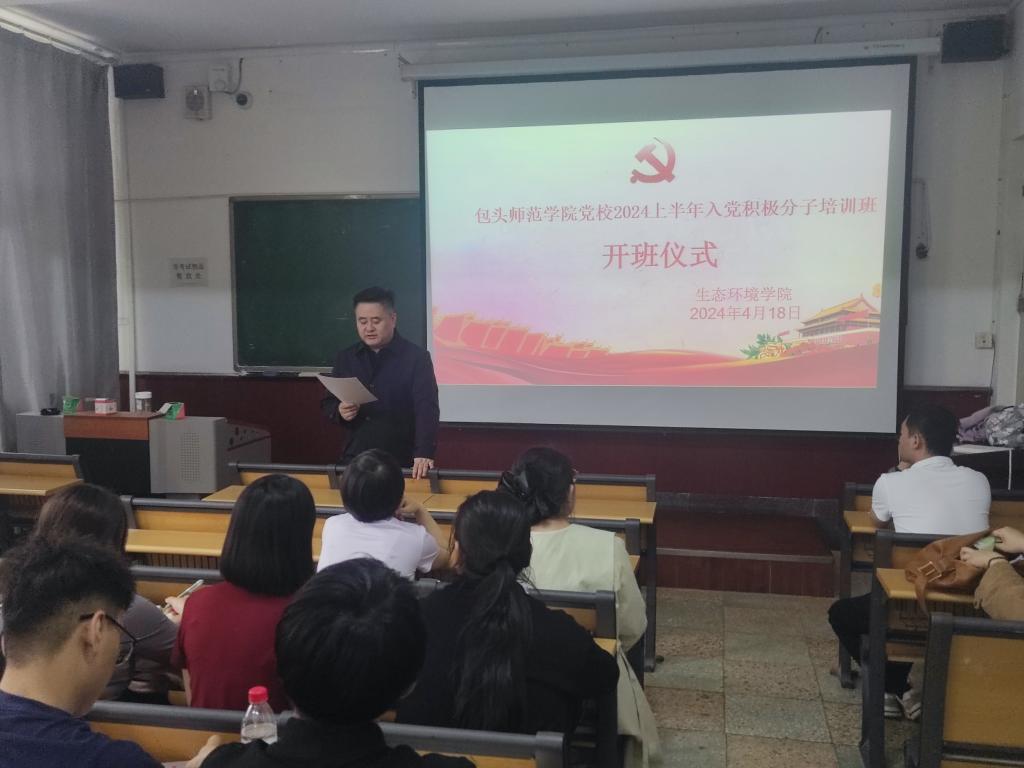 为深入学习贯彻习近平新时代中国特色社会主义思想,提升党校教育培养质量,做好院系入党积极分子教育培养工作,生态环境学院于4月18日,在齐志楼201举办了入党积极分子培训班开班仪式,学院党总支副书记刘一峰、组织员王猛、全体第48期入党积极分子参加。