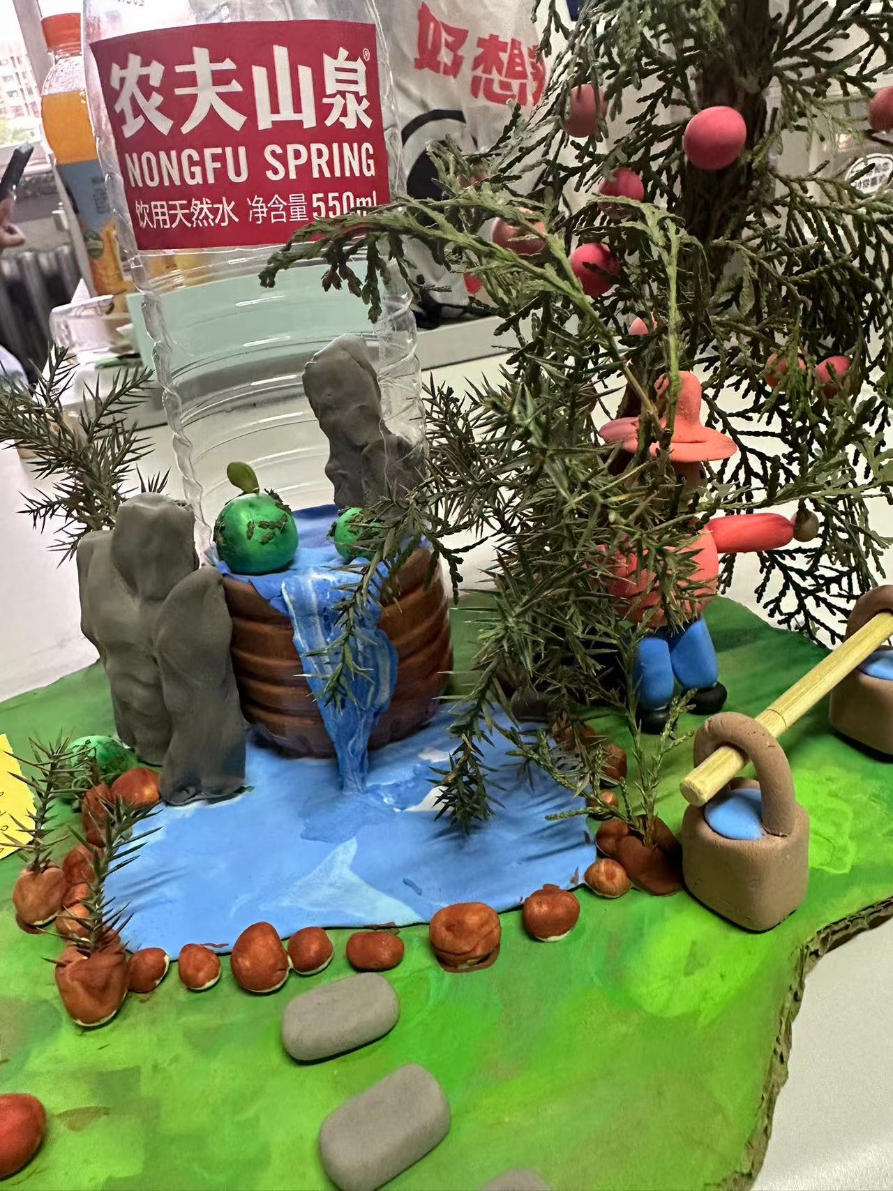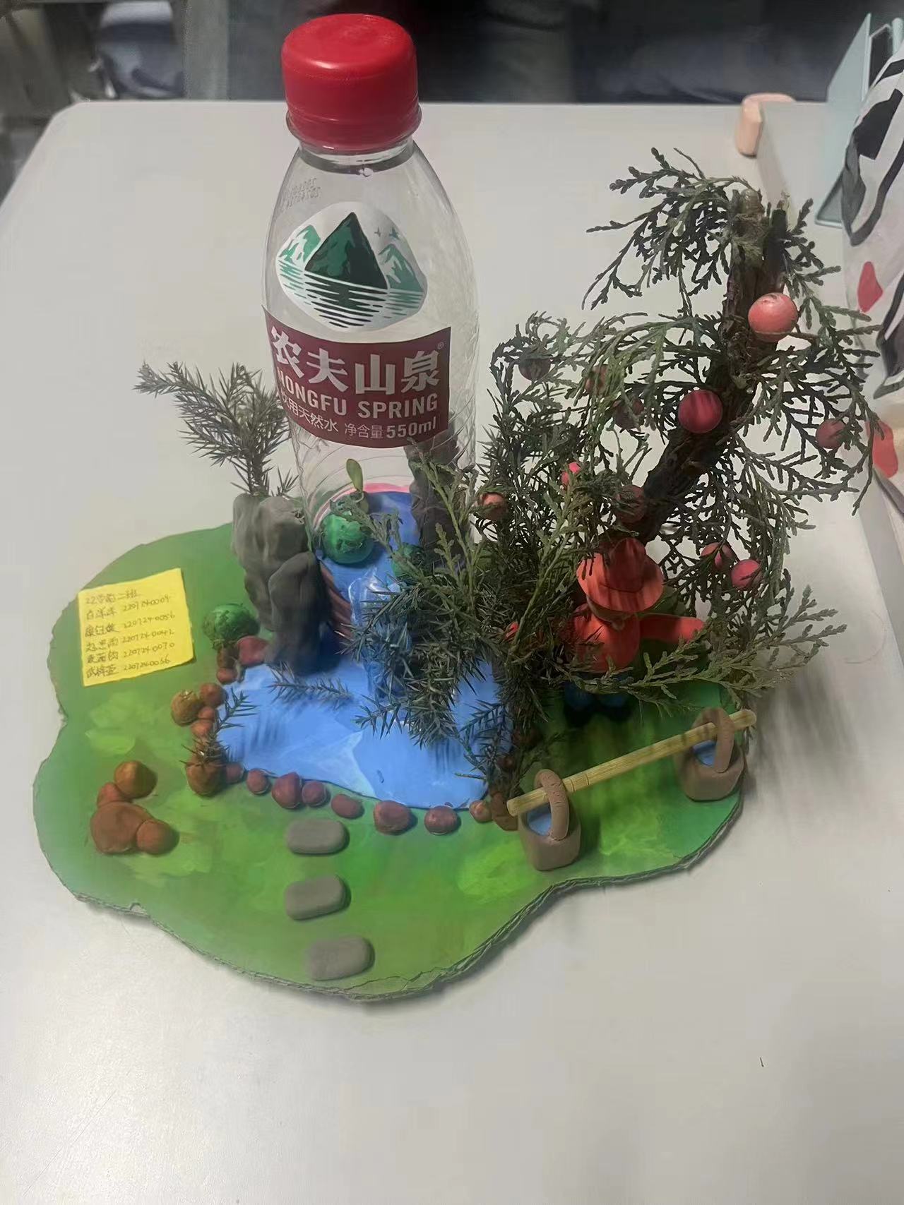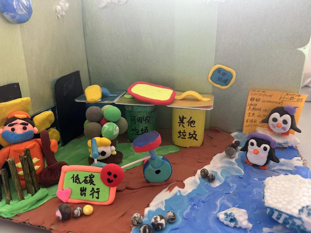此次活动以小组创作的形式展开,倡导日常环保生活理念和行为,使用变废为宝的方式,将废旧日常生活用品作为创作素材,活动共征集到33份手工作品。同学们的作品形式多样,有充满巧思的再生设计类作品;有用废弃的宣传单制作的相框笔筒;有让人眼前一亮的废旧纸箱改造航空母舰模型;有设计理念充满创意的纸雕;还有橡皮泥制作的充满生机的自然生态鱼塘等。独特的造型和材质的运用,使得这些手工作品别具一格,每一件作品都凝聚了同学们的智慧和汗水,体现了同学们对环保事业的热爱与追求。