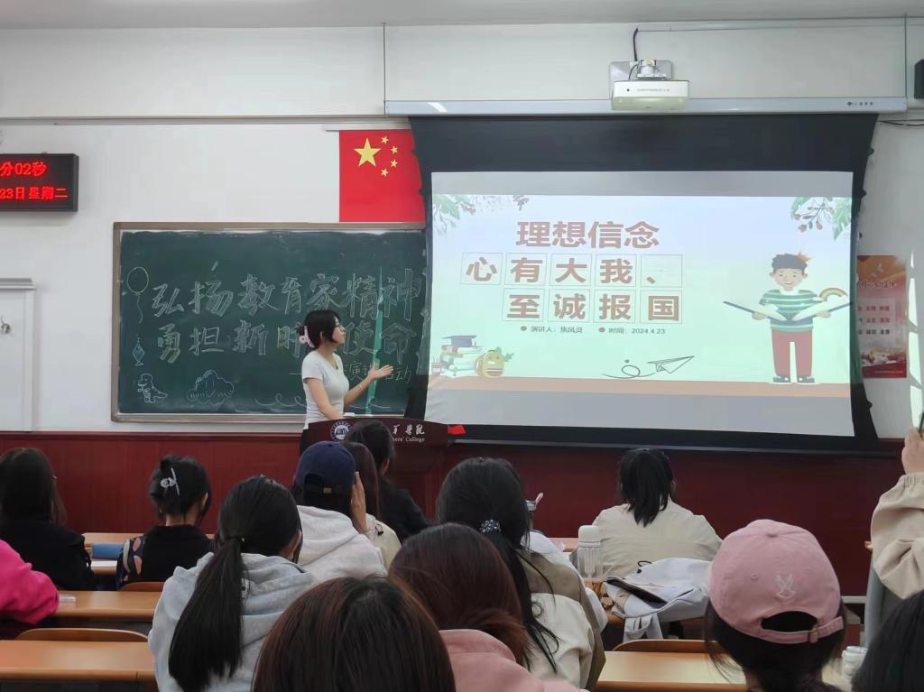 此次演讲活动旨在引导广大学生弘扬教育家精神,厚植教育情怀,做新时代的大国良师,牢记为党育人初心,不忘为国育才使命,为全面建成社会主义现代化强国、推进中华民族伟大复兴作出新的贡献。(教育科学学院)