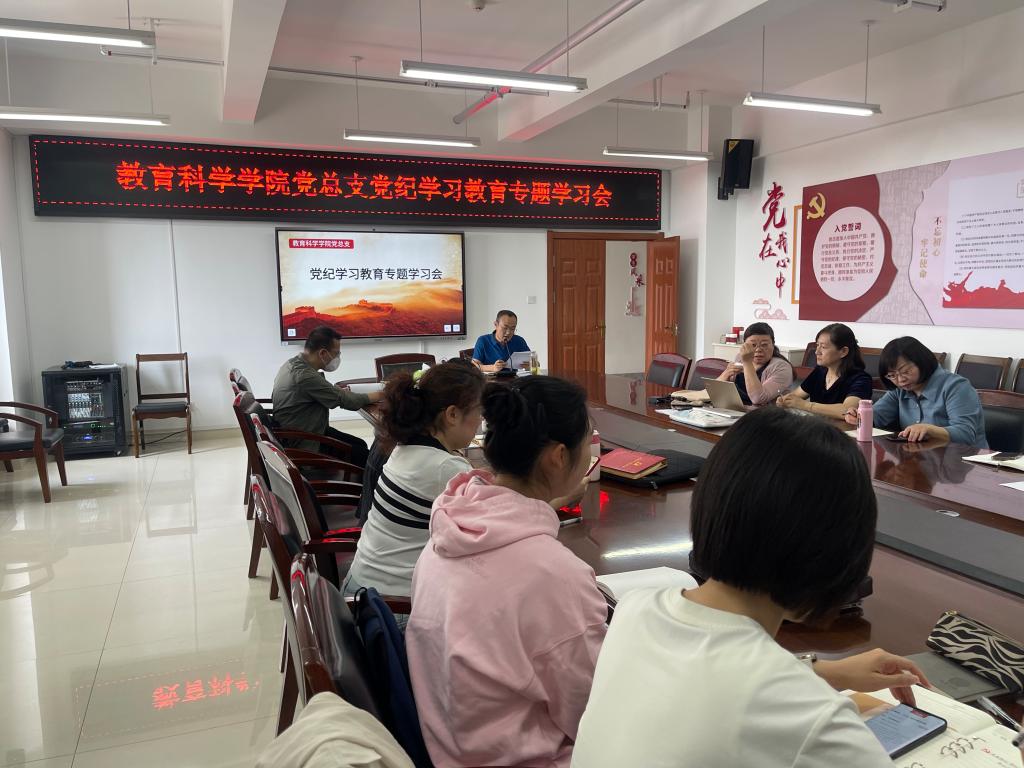 为深入贯彻落实党纪学习教育,进一步增强全体党员的党纪意识,提升党员的纪律自觉性和自我约束能力,5月9日,教育科学学院党总支开展党纪学习教育专题学习,会议由党总支副书记李志强主持,全体教工党员参会。