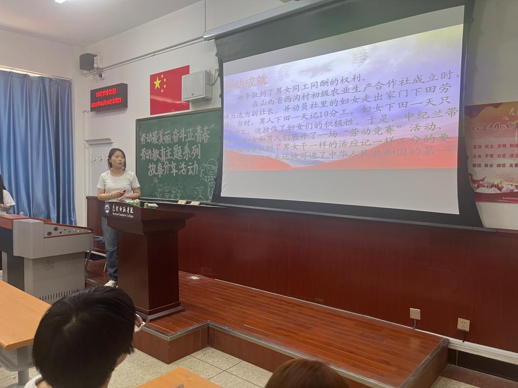劳模故事分享会活动。学生党支部于2024年5月16日开展劳动模范故事分享会活动。同学们围绕劳模精神展开深度对话,并结合自己的收获与感悟进行交流,分享了自己的心得体会,通过讲述一个个劳模故事,让同学们深刻感受到了劳模精神,其中有“为国分忧,为民族争气”的王进喜同志;有“把军人的斗志带到工作中”的龙福刚同志;还有“不怕苦,不服输”的申纪兰同志等。这些故事,既有在艰苦环境下坚持奋斗的感人篇章,也有在平凡岗位上创造不平凡的精彩瞬间。活动结束后,同学们也都纷纷表示要坚持以劳动为荣,以懒惰为耻的坚定信念。
