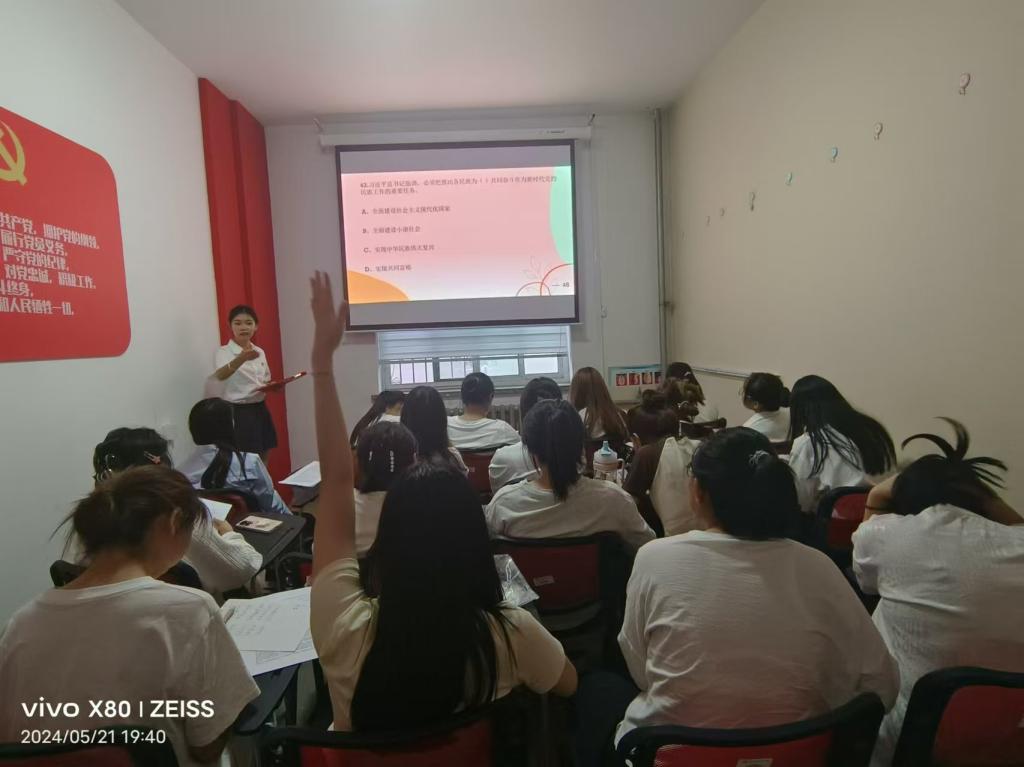 民族理论政策专题学习会。5月21日,学生党支部举办民族理论政策专题学习会活动。本次活动在“一站式”学生社区6号公寓楼党员工作站开展,18名22级、23级班委参加。活动中,首先由三位学生干部分别领学《内蒙古自治区促进民族团结进步条例》《内蒙古自治区全方位建设模范自治区促进条例》《内蒙古自治区筑牢祖国北疆安全稳定屏障促进条例》,随后同学们交流了学习心得,最后,通过知识问答检验同学们的学习成果,在问答环节同学们积极抢答,进一步了解了民族政策和民族文化知识,增强民族团结意识、丰富民族政策理论知识。