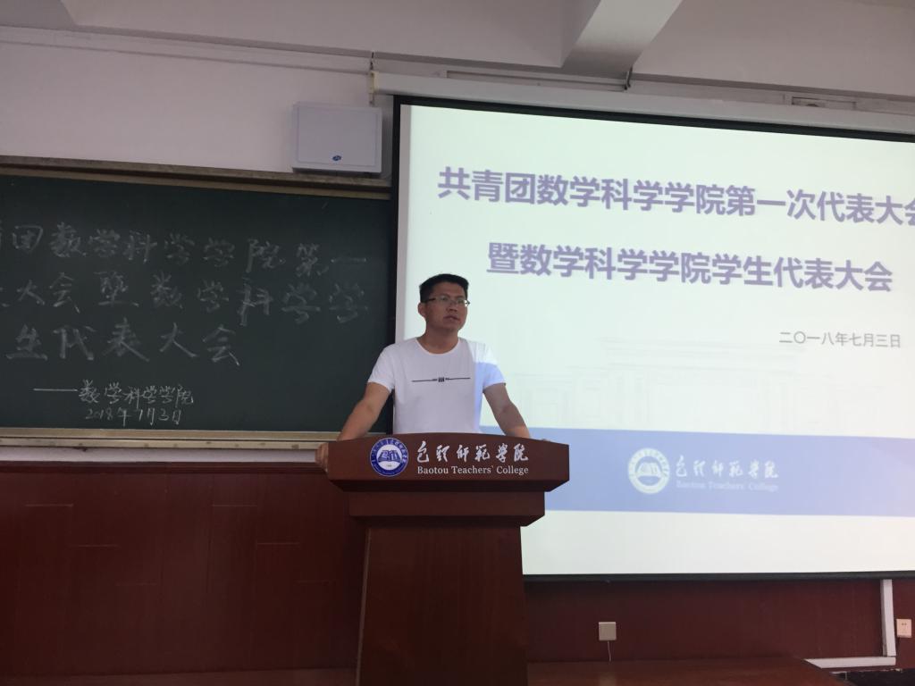 7月3日,包头师范学院数学科学学院第一届团学代会在博学楼400隆重召开,党总支副书记、副院长杨尚,团总支书记宋金锦以及47位团代表、48位学代表参加会议。