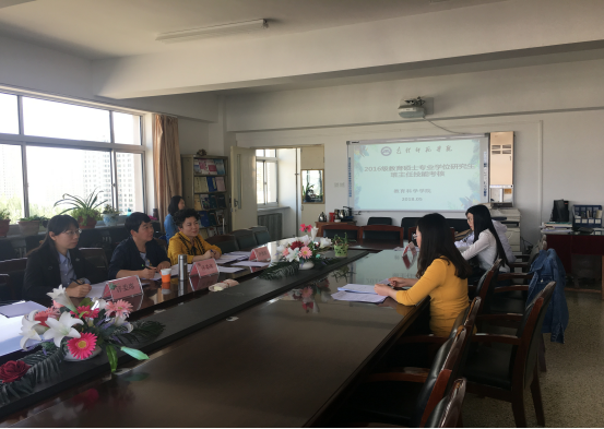 5月22日下午,教育科学学院举行了2016级小学教育专业学位研究生班主任技能考核活动。本次活动由包钢26小尚慧清老师及教育科学学院徐丽华、王月莲老师担任评委。考核分为笔试和口试两部分,笔试内容为提交一份《班主任年度工作计划》,口试部分包括两项内容:一是由面试考官任意选取该生《班主任年度工作计划》中的一项内容,要求考生阐述项目意义与目标,以及具体的操作办法,可能遇到的问题及应对办法,时间为5分钟;二是现场抽取一个教育案例分析题进行阐述,时间为2分钟。