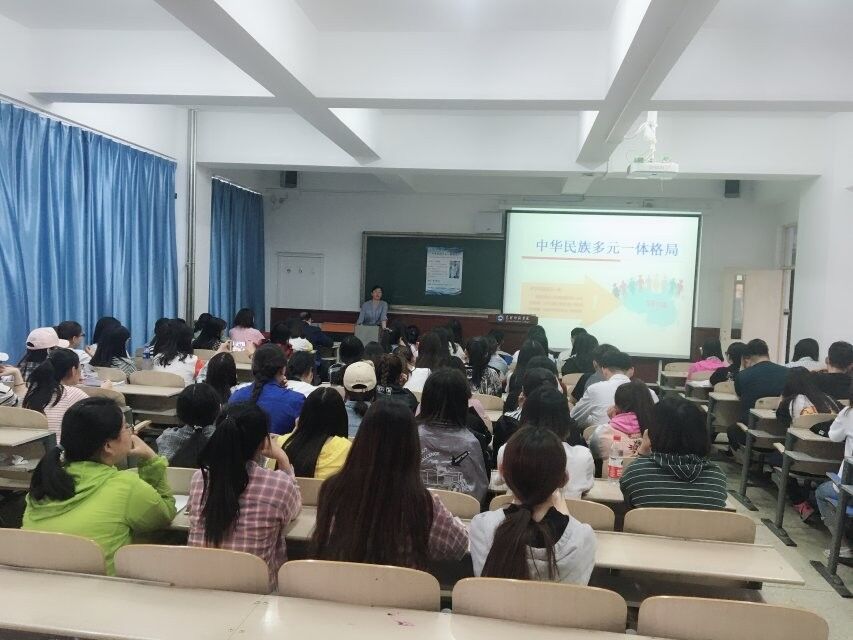 4月27日晚7点,在博学楼400教室,由资源与环境学院党总支和马克思主义学院党总支联合举办了第十个民族政策宣传月系列活动之名师讲座。讲座特别邀请马克思主义学院民族理论与民族政策教研室主任李德英副教授主讲,她主讲的题目是《中华民族多元一体化格局》。近130名师生聆听了讲座,讲座由党总支书记李建军主持。