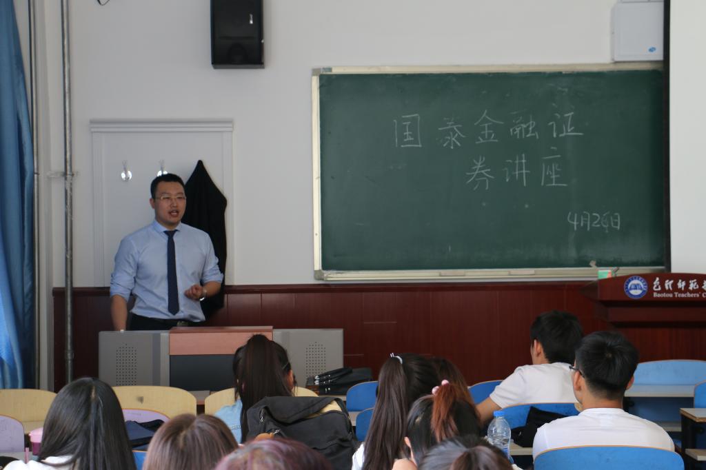 学院邀请国泰君安证券公司包头市场部经理马超志担任主讲,他向同学们介绍了现实金融证券投资中的诸多实际操作与技巧。同学们在讲座中交流了一些平时生活中遇到的投资活动,了解到在投资过程中应正视风险,谨慎选择,细心调研,理性分析。正如马经理所说,要做到“欲投资,先增知”。部分同学现场报名参加了“寻找未来投资家·全国高校股神竞技赛”,参赛同学将会在赛程中接受进一步的培训,了解更多投资要点,在虚拟投资竞赛中增加投资经验,提高理财水平。