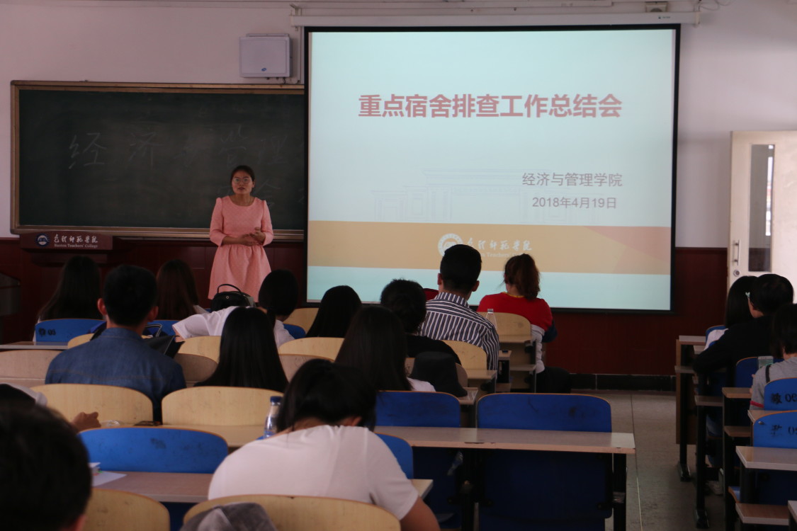 4月19日下午,经济与管理学院在博学楼500教室召开重点宿舍排查工作总结会。会议由辅导员陈丽芳主持,经济与管理学院各宿舍舍长参会。