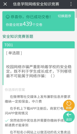 2018年4月15日是《中华人民共和国国家安全法》颁布实施以来的第三个全民国家安全教育日。为增强新形势下我院学生的网络安全意识,信息科学与技术学院在“包师信息”微信公众平台开展了网络安全知识竞赛活动,我院大一、大二、大三学生参加了本次竞赛。