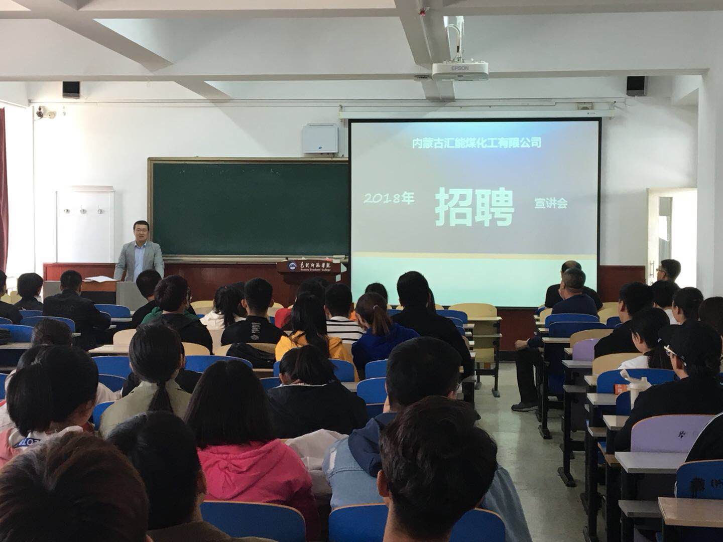 9月20日,化学学院举办了内蒙古汇能煤化工有限公司专场招聘会。该公司吕鹏、王磊、白俊山等一行5人在化学学院领导的陪同和安排下,顺利完成了招聘任务并参观了化学学院院史馆。