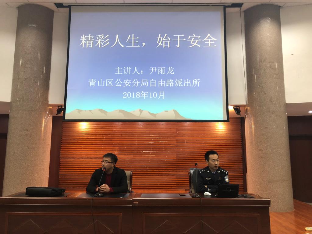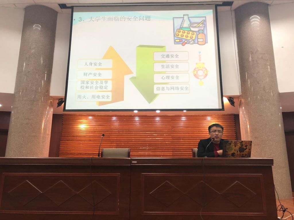 为了增强新生的安全意识,提高自我保护能力,创建平安校园,10月10日晚,校保卫处邀请青山区公安分局尹雨龙警官在学术报告厅为全体新生做了校园安全教育讲座。生物学院2018级全体新生认真聆听了讲座。