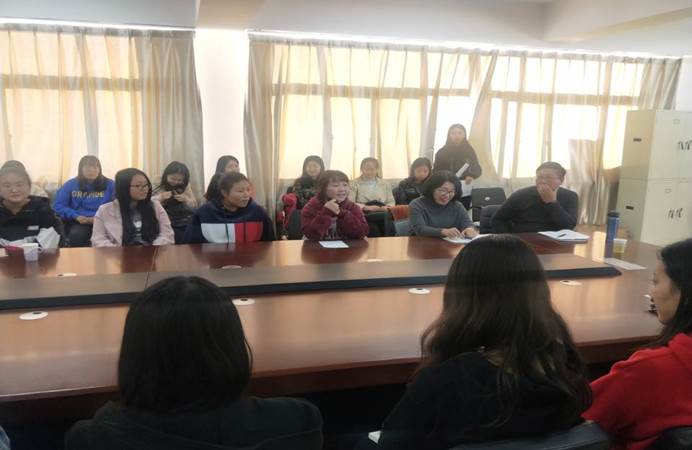 朱丽老师首先肯定了少数民族学生在学校及学院取得的优异成绩,希望同学们畅所欲言,谈谈在校期间的学习、生活情况。随后韩秀凤、杨彬、海全胜三位少数民族老师,分别结合自己的求学经历,为在座的同学提出专业学习、语言训练等方面的建议和思路,希望同学们加强交流,提升语言表达能力,共同成长进步。