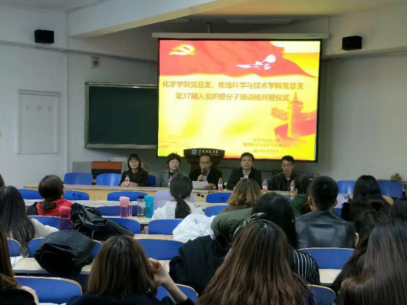 根据学校党委组织部工作的安排和布署,化学学院党总支、物理科学与技术学院党总支联合举办了第37期入党积极分子培训班。