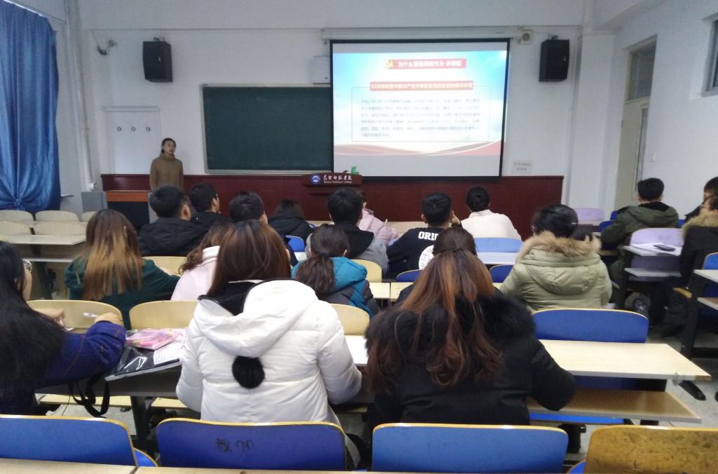 会上,谭老师与学生党员一起重温了入党誓词,并为大家讲述了人民好公仆焦裕禄、优秀党员干部孔繁森、铁人王进喜以及“时代楷模”黄大年践行群众路线的先进事迹。她讲到,党员并不是一种称呼,它代表着奉献和牺牲,是党员就要讲奉献、有作为。大学生党员要始终把党性原则铭记于心,时刻牢记和践行全心全意为人民服务的根本宗旨。