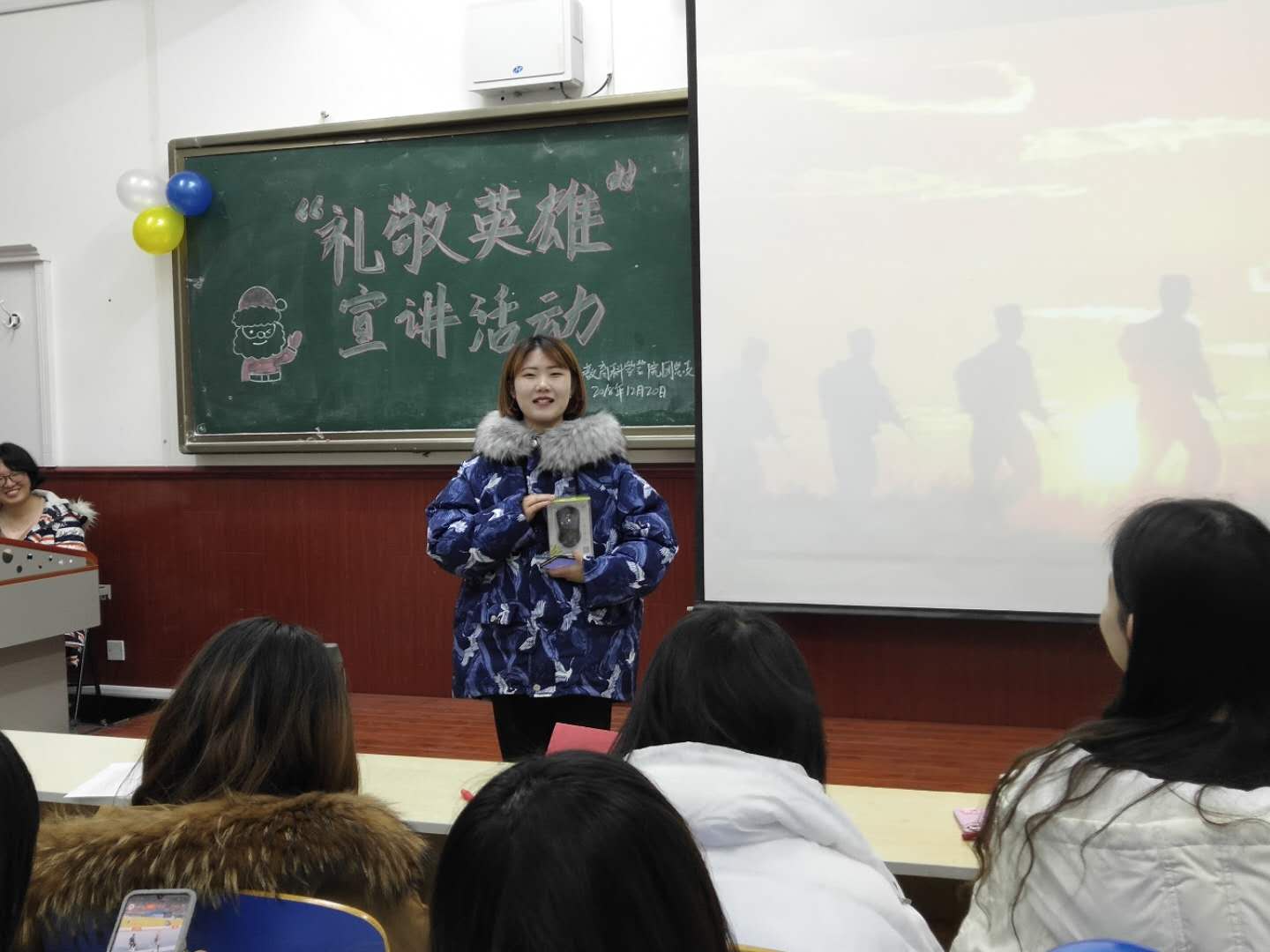 为了积极教育和引导广大青年学生爱国、担当、奋斗,争做担当民族复兴大任的时代新人,2018年12月20日晚,教育科学学院团总支在博西600举办“我的肩膀能挑多重的担子”系列活动之“礼敬英雄”宣讲活动,团总支4位部长担任评委。