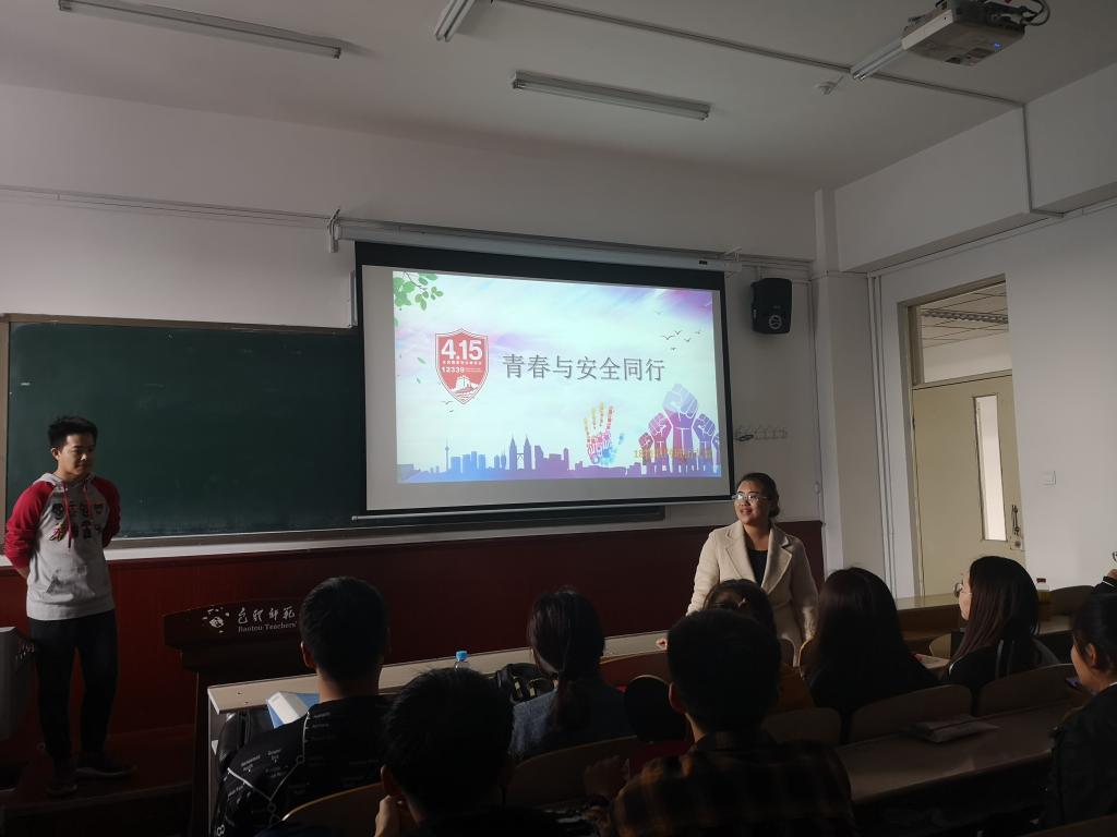 为贯彻落实习近平总书记提出的“总体国家安全观”,进一步促进广大团员青年了解、学习国家安全知识,树立安全意识,真正认识到“国家安全,人人有责”,信息学院18物联网团支部和18电子团支部分别在4月11日和4月12日下午,在博学楼西202和404教室举办了“青春与安全同行”和“国家安全教育”团日活动。学院辅导员姜嘉丽老师出席并指导了本次团日活动。