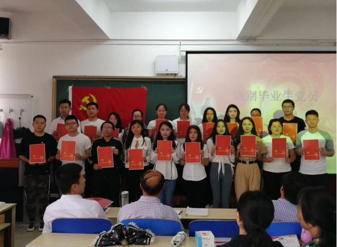 党课开始前,每位毕业生党员结合学习收获和生活感悟畅所欲言,分享自己四年的心路历程。之后,高日晨同志为毕业生党员送上祝福。他希望全体毕业生党员做到“诚、实、真、严、责”五字,每个字都包含三层含义,即希望毕业生党员要进一步坚定理想信念,增强党员意识,加强党性修养;提升自己的境界,树立自身的家国情怀,不断增强自身的文化素养,实现自己的人生价值和美好追求。最后,由教工党员何欣带领全体师生党员向党旗庄严宣誓,重温入党誓词。