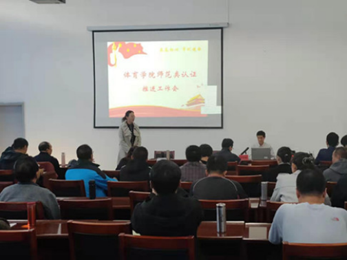 张细谦教授结合广东第二师范学院体育学院自身师范类认证工作实际,对课程教学大纲制定、组织学生专业技能培训等方面工作实施进行了讲述。
