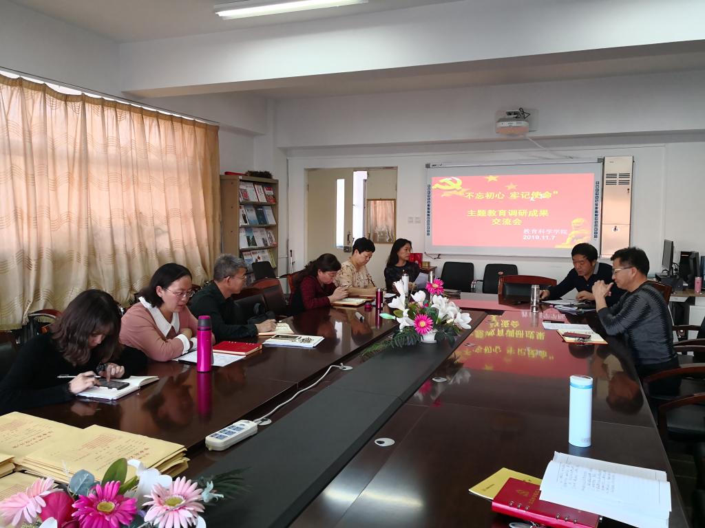 11月7日下午,根据学校“不忘初心,牢记使命”主题教育的工作安排,教育科学学院召开领导班子成员主题教育调研成果交流会,学院领导及学院中心组成员参加了研讨会。