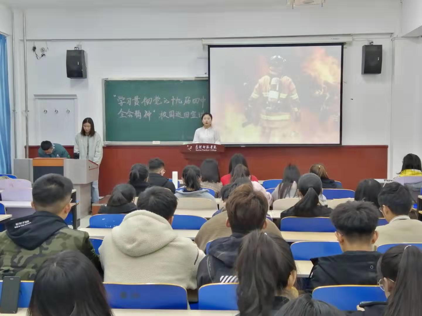 11月15号晚上,经济与管理学院青年志愿者协会在博学楼东505教室召开了“学习贯彻党的十九届四中全会精神”校园巡回宣讲活动。