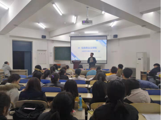 为进一步增强“不忘初心、牢记使命”主题教育问题检视整改工作的时效性和针对性,认真落实好“守初心、担使命、找差距、抓落实”总要求,按照包头师范学院加强学风建设工作实施方案文件的要求,11月25日晚7点30分,马克思主义学院在博东406召开了学风建设工作会议并做了具体工作部署。主管学生工作的高德胜副书记、学工办主任刘立斌、辅导员安波老师和19级全体少数民族预科生参加了本次大会。