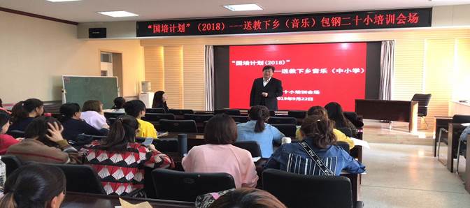 6月14日至10月12日、6月18日至9月28日、9月22日至10月28日,在学校继续教育学院的大力支持下,音乐学院选派教师与内蒙古自治区及包头市音乐教研员、部分中小学一线音乐骨干教师共同组建“国培计划教学团队”,于2019年分赴巴彦淖尔盟五原县、包头市东河区、包头市昆区,对各地区中小学音乐教师进行了送教下乡培训。