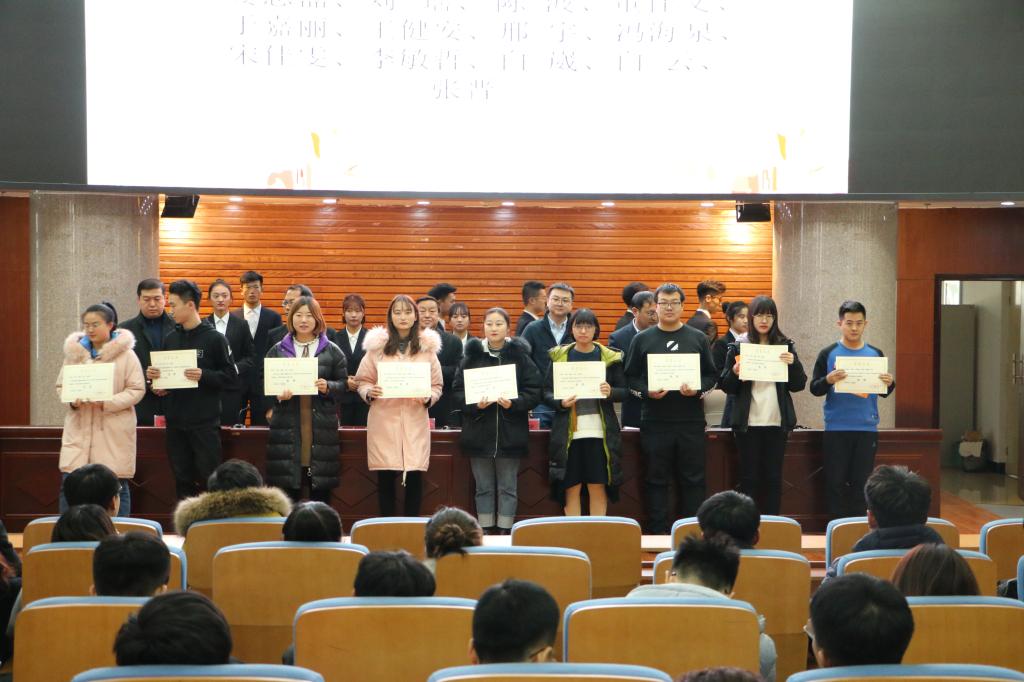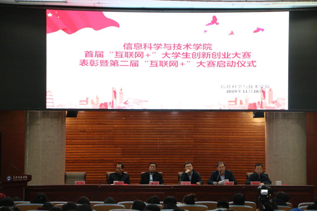 为了加快培养创新创业人才,激发大学生创新创业热情,迎接明年的校赛和省赛,11月28日下午,信息学院在博学楼学术报告厅举办了首届“互联网+”大学生创新创业大赛表彰暨第二届大赛启动仪式。信息学院党总支书记周汉忠,院长马占飞,副院长张为,创业教育学院综合办公室主任杨志威,信息学院优秀校友、内蒙古新未来文化教育科技有限公司执行董事、Anne talk在线外教联合创始人孙宇出席会议。信息学院全体班主任,大一、大二全体学生、大三班团干部参加了会议。会议由信息学院副书记、副院长郭宏升主持。