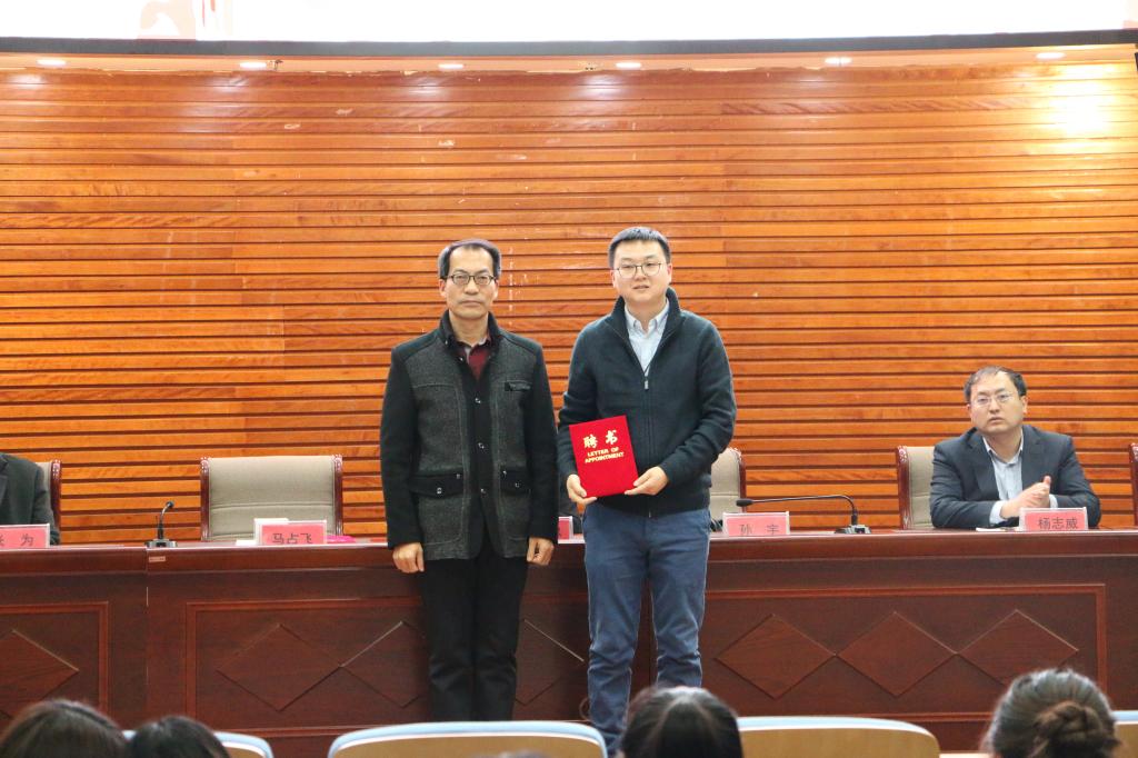 会上,马占飞院长宣布了比赛获奖名单,出席会议的各位领导为获得信息学院首届“互联网+”大学生创新创业大赛金、银、铜奖的同学进行了颁奖,周汉忠书记为优秀指导教师颁奖。获奖学生代表魏中华分享了自己的收获,他说:“这次创业活动使我们从书本、实验室和网络中走出来,来到充满挑战和机遇的现实社会之中,也让我们对未来更加充满信心”。优秀指导教师刘爱军代表指导教师发言,他指出,“互联网+”大学生创新创业大赛可以增强学生对本专业知识的学习兴趣,提高学生的创新思维能力、实践动手能力以及创新创业能力,提高学生的社会适应能力,并表示今后将在实践教学中中,更加注重培养学生科学的创新能力,做好学生实践创新能力发展的引路人,为学校科技创新教育再上一个新台阶而努力! 马占飞院长为内蒙古新未来文化教育科技有限公司执行董事、Anne talk在线外教联合创始人孙宇老师颁发了信息学院创新创业指导老师聘书。