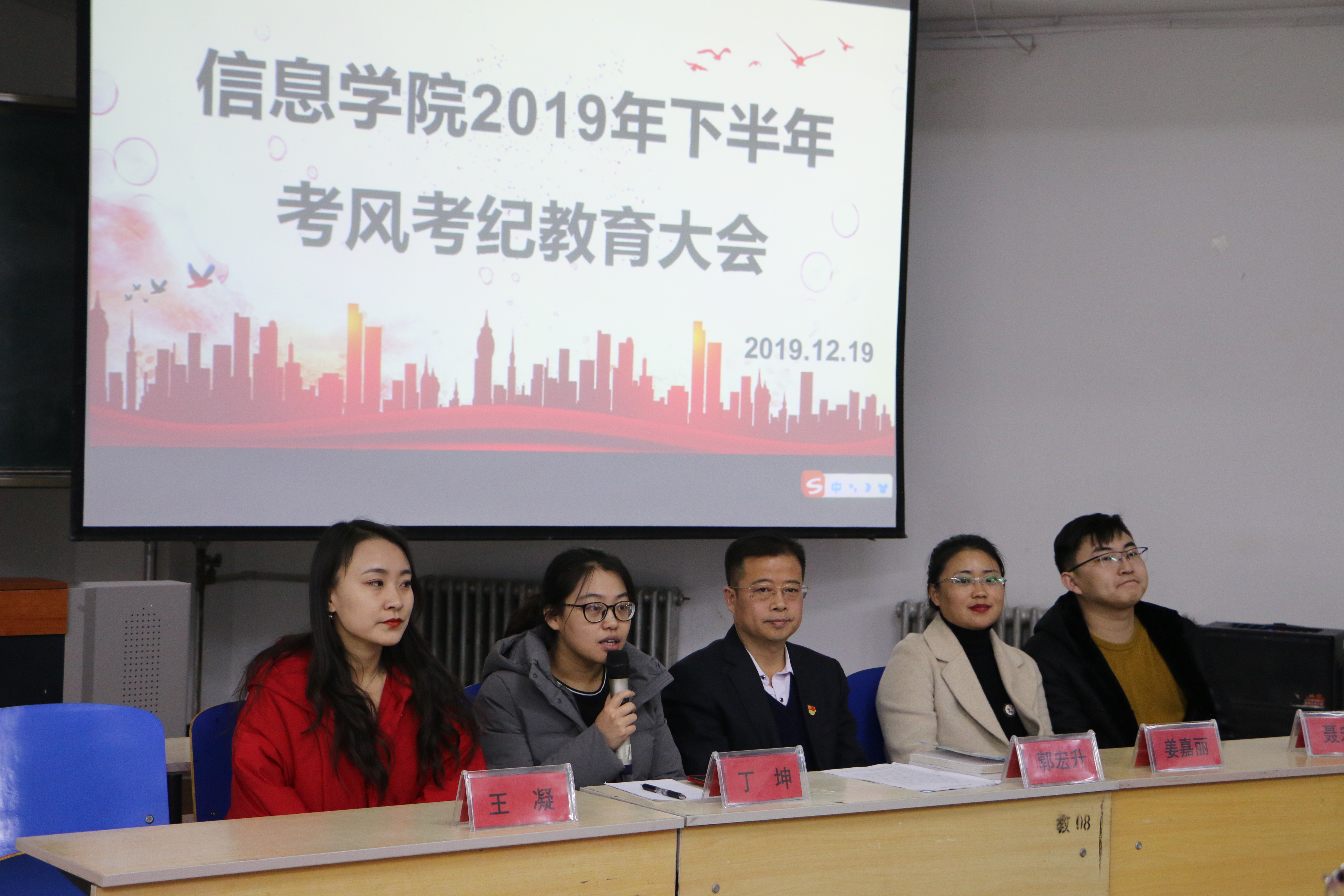 期末考试将至,为了端正考风,严肃考纪,培养同学们树立诚信应考的理念,12月19日下午,信息学院在博学楼东605教室召开2019年下半年考风考纪主题教育大会。学院副书记副院长郭宏升、全体辅导员和宿舍长、班团干部参加了大会。会议由学工办主任丁坤主持。