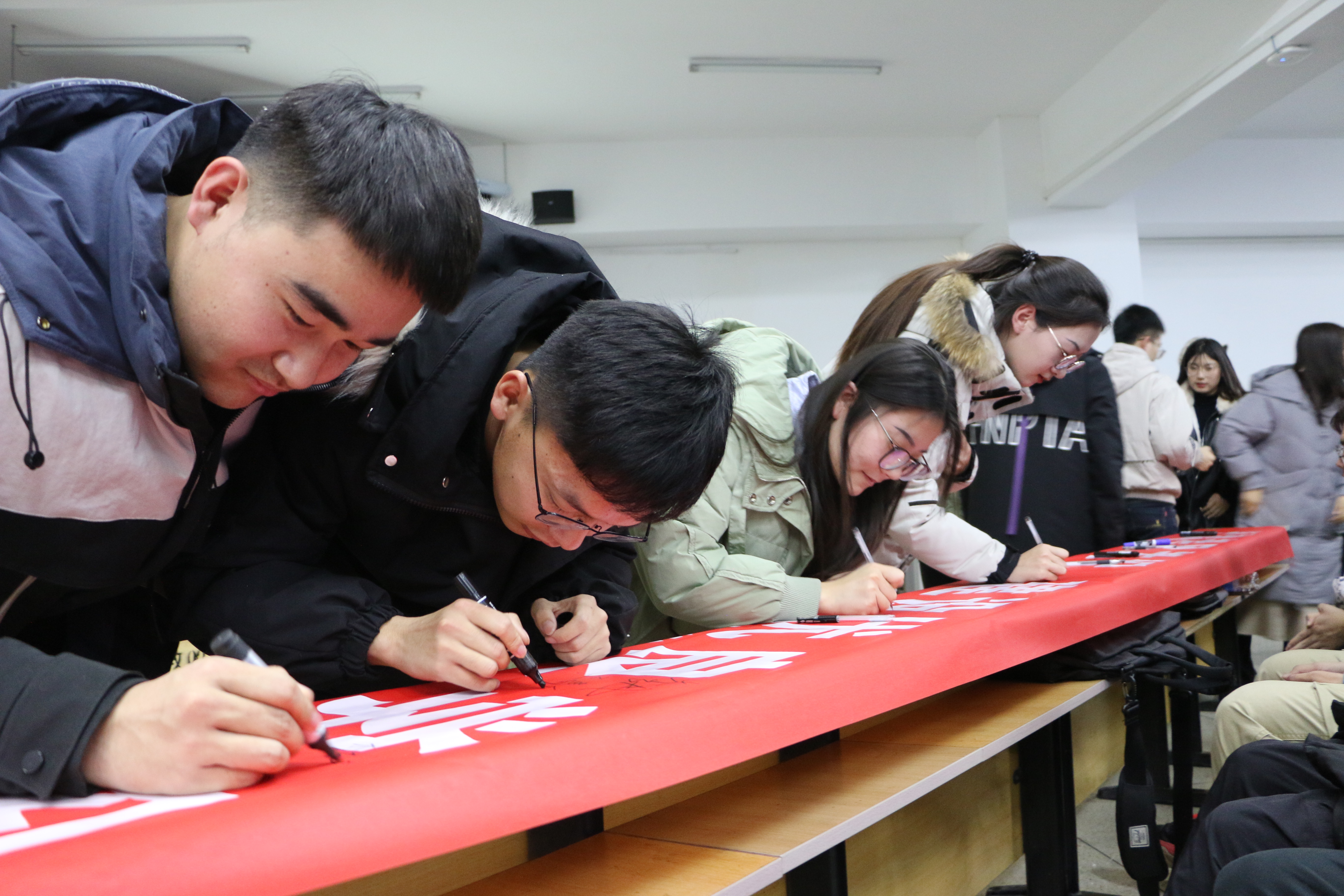 会上,16软工班国家奖学金获得者张正同学进行了考前复习经验交流,他说,学习是一个积累的过程,平时要认真学习,期末才能有重点的复习。他从预习、听课、复习、作业四个环节为切入点,介绍了他自己的学习方法,希望对大家有所帮助。学院学生会主席17电子李坤同学带领全体同学进行了诚信考试宣誓。大会最后进行了诚信考试签名活动。各班同学在写着“严肃考风考纪,建设优良学风”的条幅上郑重签下自己的名字,同学们纷纷表示将严格按照考试规定,诚信考试,绝不作弊,在期末考试中交上一张满意的答卷。