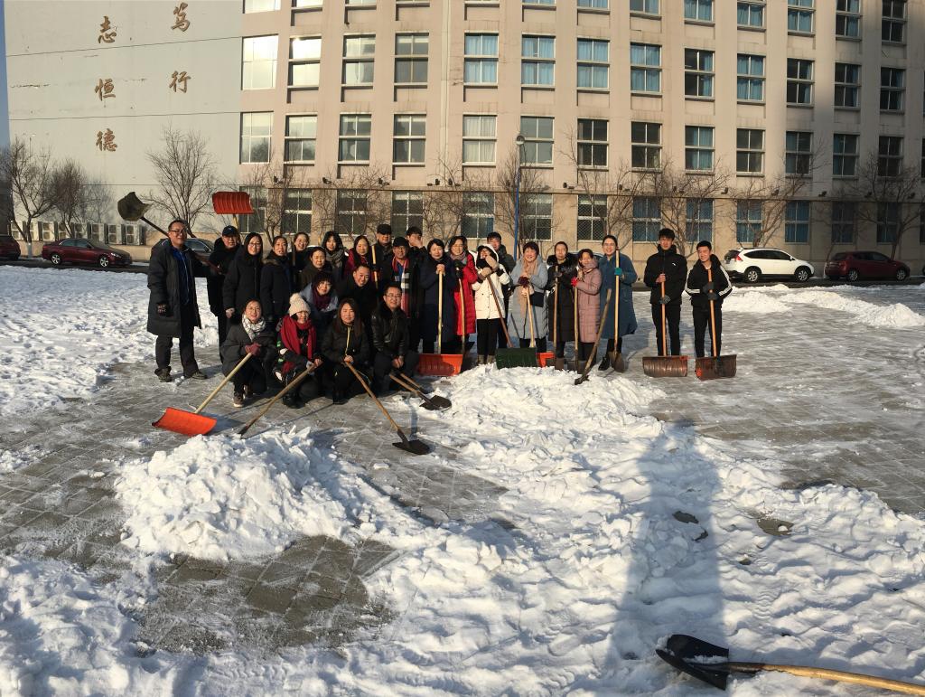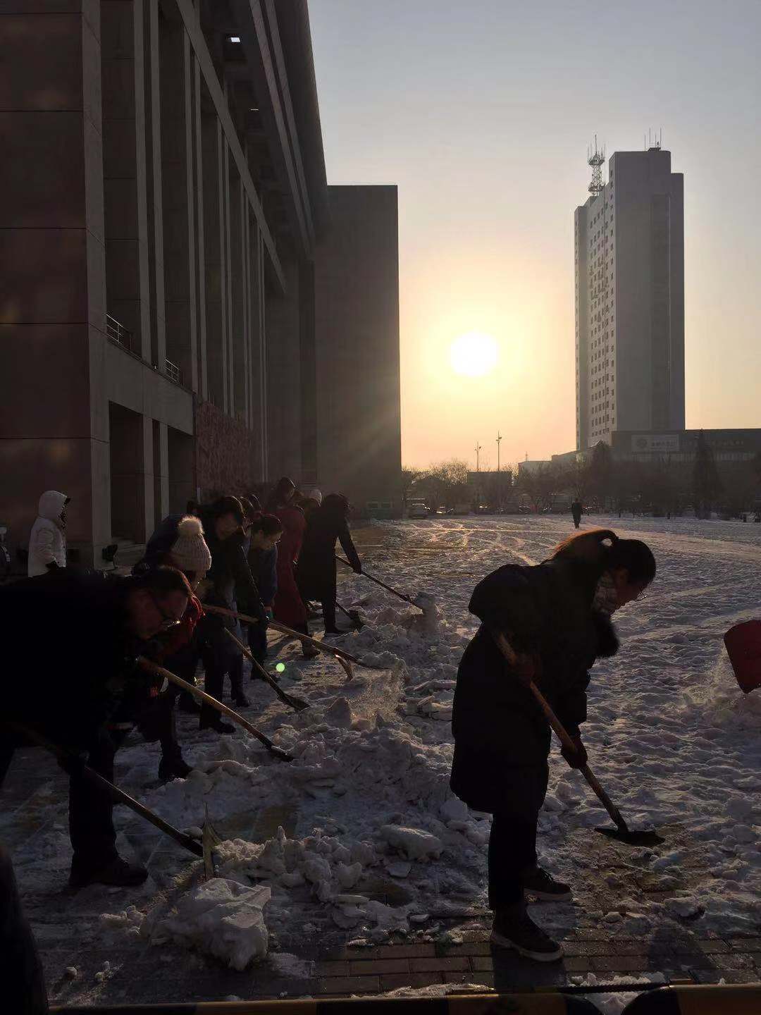 2019年的第二场雪,让美丽的校园披上盛装,也给包头师范学院师生行动带来不便。为保证师生安全,方便师生出行,今天上午,政法学院没有监考任务的教师九点准时赶到学校图书馆门前,投入到扫雪活动中来。经过一个早上的奋战,图书馆门前积雪全部及时清扫干净,为师生们开辟了一条温情之路。(政治与法律学院)