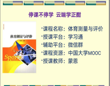 春暖花已开,云端学正酣。在线教学工作开展以来,运动人体科学教研室认真贯彻落实学校和学院关于做好“停课不停学”的工作要求,迅速组织教研室教师,进行了认真准备和积极探索,全力保障了学校在线教学的顺利开展。经过8周的教学,大家已经对信息技术与教育教学深度融合的教学模式基本熟悉掌握,为更好地帮助教师开展高效的线上教学,来自运动人体科学教研室的蒙恩老师结合《体育测量与评价》在线教学经验进行了分享交流。