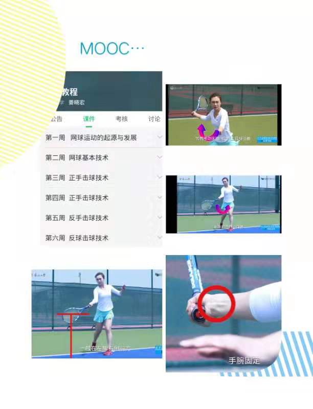 19级社会体育指导与管理专业基础课《网球普修》采用了微助教+腾讯会议+微信+中国大学MOOC等授课方式:教师利用微助教上传教学PPT,电子教材,完成课堂签到,讨论,和作业管理等,通过腾讯会议进行直播讲解和答疑;利用微信群进行每日练习上传小视频打卡制度,督促学生在线下进行每天的重复训练;利用中国大学MOOC中与本课程授课内容计划相符的优秀网球教学资源通过微信群发送链接让学生更加直观的进行线上学习。