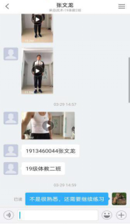 2019级体育教育专业一班李根等同学们评价:武术课程通过学习通授课,采用了文献资料教学学习理论知识,后期采用视频值观教学。前期的理论知识让我们初步的了解了武术的含义以及基本知识,后期通过视频的教学方法学习武术的套路演练,使我们的身心都得到了武术带来的魅力。通过视频学习加以练习,上传到学习通,由老师判阅和指点练习中的不足使我们能直观的体会到视频教学的优越性。在视频学习中反复观看让我们对武术动作能加强记忆。在学习过程中与老师的讲解相结合有了更多的认识。在疫情期间,让我们对武术的学习充满的浓厚的兴趣。望疫情早日过去,回到校园学习更多的武术知识。