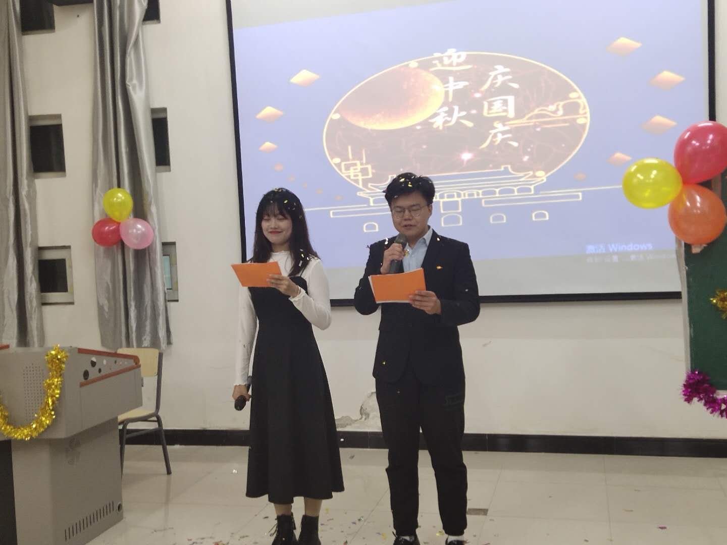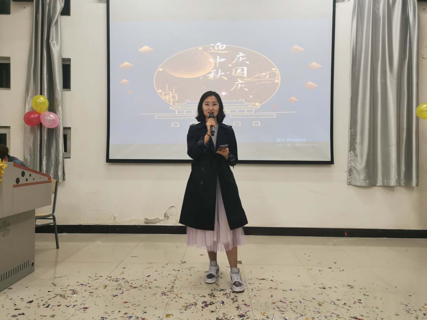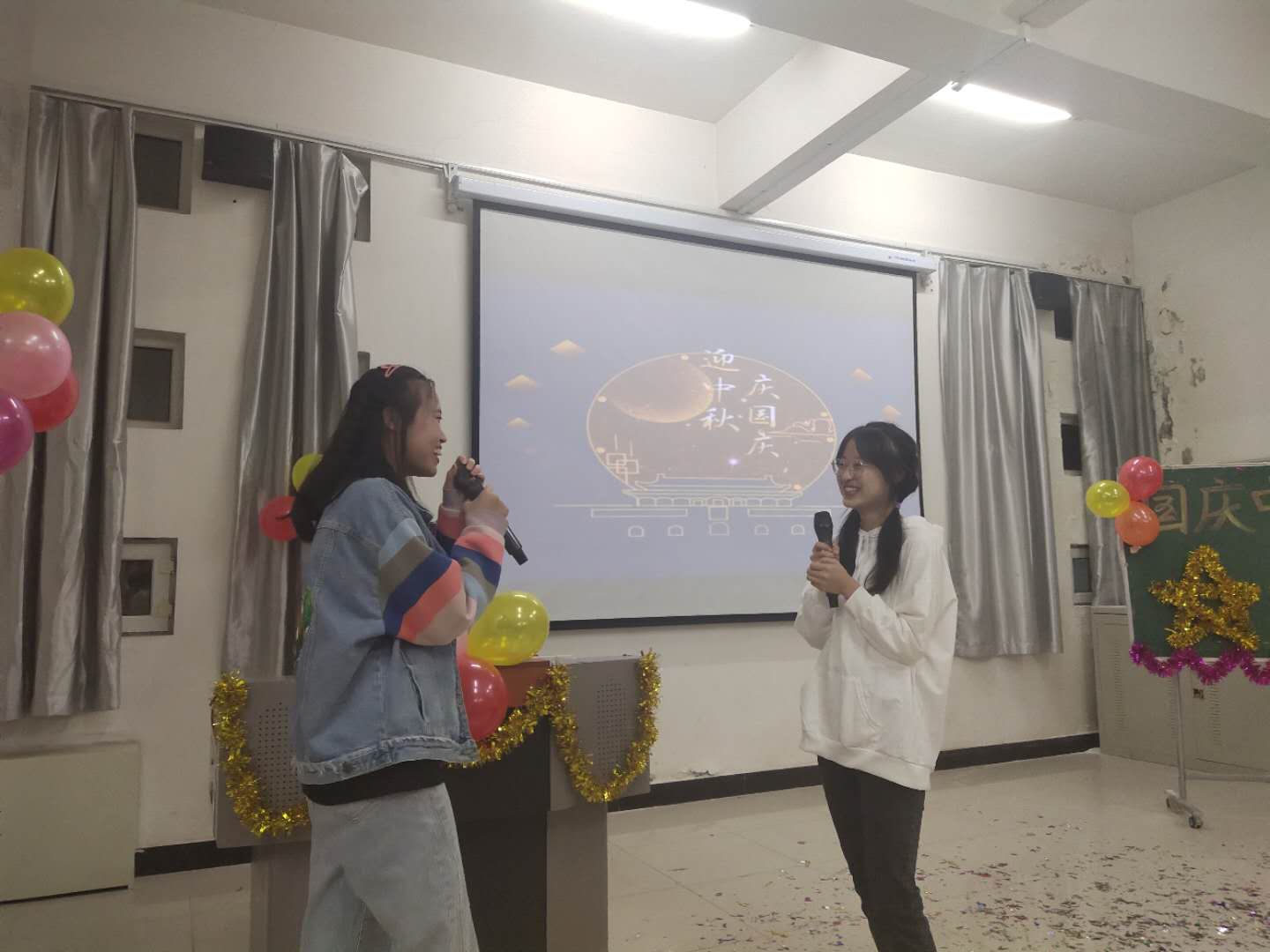 活动在主持人热情洋溢的致辞下拉开帷幕。主持人幽默和谐,同学们热情高昂,将歌曲演唱、舞蹈、观看爱国视频、深情朗诵、即兴游戏完美结合在一起,整场活动内容丰富,形式多样,整个会场轻松愉悦,喜庆热闹。最后,活动在整齐高昂的《我和我的祖国》大合唱中落下帷幕。