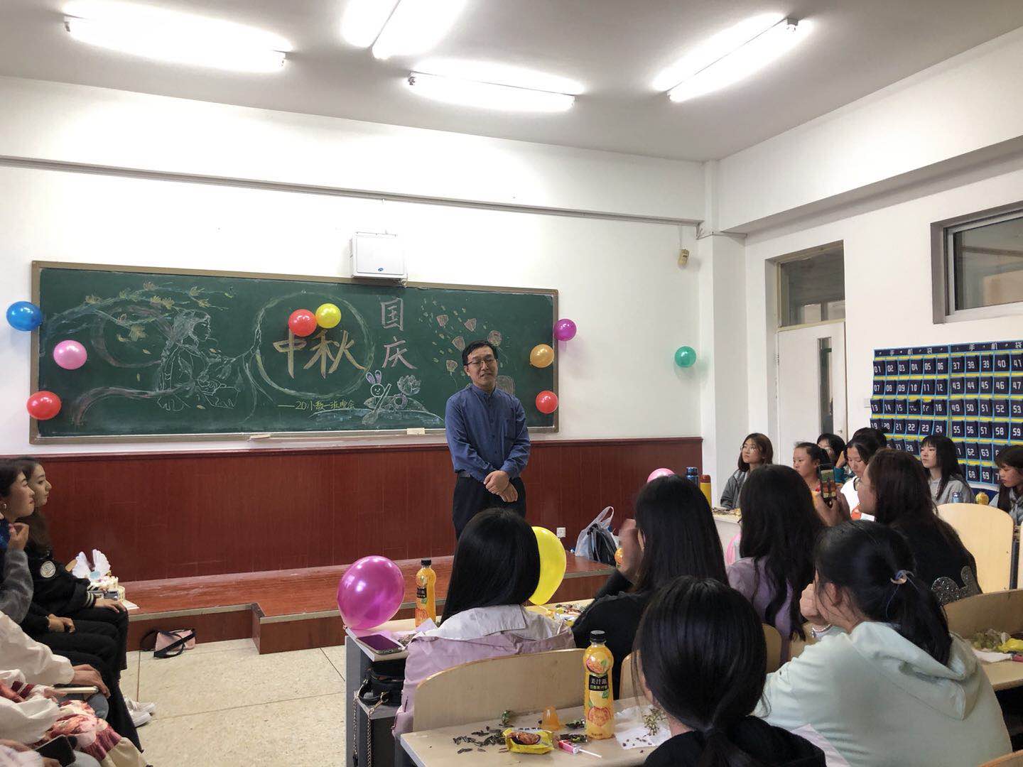 平分秋色一轮满,长伴云衢千里明。为了进一步铸牢中华民族共同体意识和家国情怀,增进新生之间的相互了解,增强集体凝聚力,10月1日下午,值此国庆、中秋双节之日,教育科学学院2020级各班班主任和助理班主任分别组织本班新生举办了一场“庆国庆、度中秋”的茶话联欢会,共同庆祝新中国成立71周年生日、欢度中秋传统佳节。教育科学学院党总支书记张岫峰分别走访慰问了各班级新生,为同学们送去节日祝福和激励。