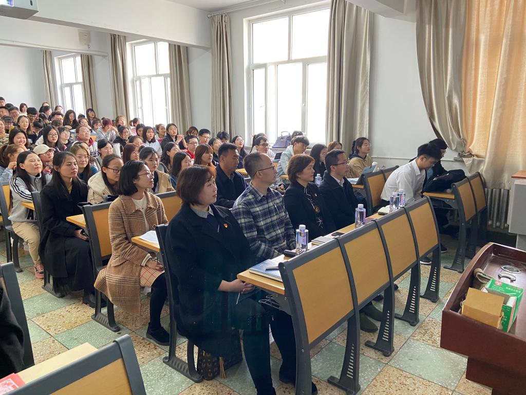 大会首先表彰了16名校级优秀实习生和15名院级优秀实习生,随后优秀实习生代表刘媛、刘佳妮、董士哲、高耀辉分别从实习生活和小学、初中、高中的实习体会角度进行了经验分享。之后,毛鑫国和董金茂从指导教师角度进行了总结和分析。毛鑫国叮嘱学生面对身份变化,不要急于求成,适当调整自己,踏实走好每一步。董金茂就“教育实习怎么做”进行了具体讲解,引导学生以数学人的情怀传播数学文化。大会现场气氛轻松热烈,师生对交流分享的内容给予极大肯定。