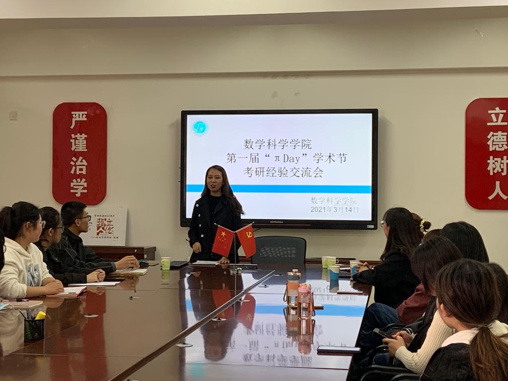 数学科学学院希望以庆祝国际数学日“π Day”的机会,通过一系列学术讲座和学术活动,为全校喜欢数学、热爱数学的师生创造学习、交流、探讨、互动的机会,营造浓郁的学术氛围。此次考研面试和调剂交流讲座意在帮助考研学生更顺利地准备面试、调剂,提高全院考研的成功率,助力学生未来的学术成长。(数学科学学院)