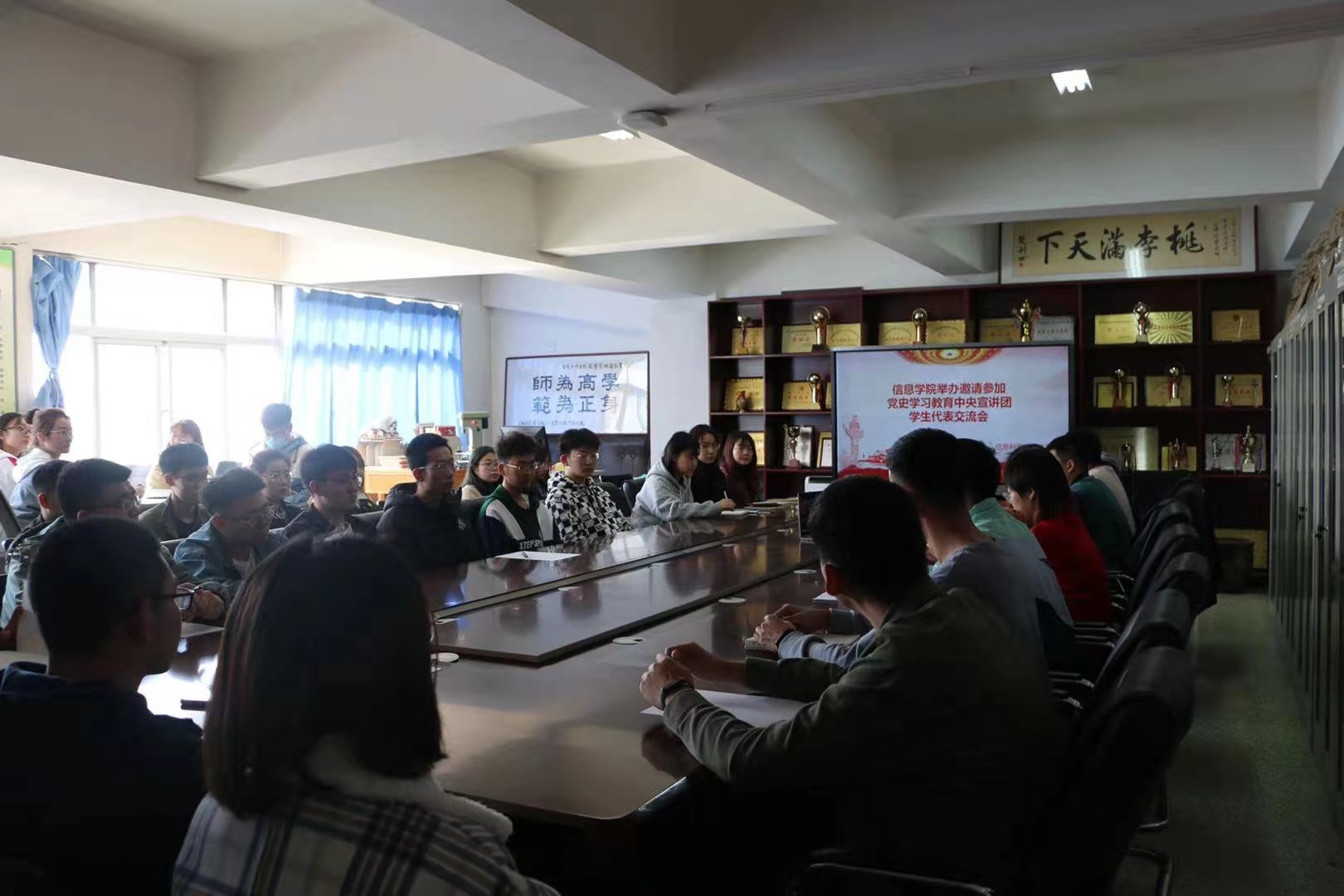 交流会后,党员、学生干部表达了自己的感想,认为“作为一名大学生我们应该学好党史,以史明志,在传承历史精神中赓续红色基因,铸牢理想信念。以史为鉴,旗帜鲜明地反对历史虚无主义,在理论辨析中正本清源、固本培元。以史明今,做到知行合一、言行一致,不断增强使命担当,提升个人本领”。“作为新时代青年应不断加强党史学习,真正做到学有所得、学有所悟、学有所成,从党史学习中汲取奋进力量,以更加昂扬的精神状态和奋斗姿态,建功新时代、奋进新征程。” (信息科学与技术学院)