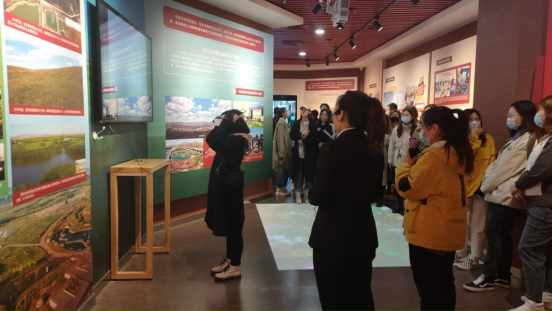 上午八时,贾亮老师组织大四实习生和老师们在博学楼前进行了集体合影,再次清点人数后坐上巴士前往今天的第一站——包头市党群中心。到达党群中心后,热情的讲解员为大家详细介绍了中国共产党的发展历史和五大建设,这更加坚定了同学们跟党走的决心。紧接着,大家一起在党旗下进行了合影留念。同学们还参观了馆内的书店并在讲堂观看了第四期《榜样》,老英雄张富清同志的事迹让大家心生敬佩之情,鼓舞了在场的每一位青年人坚守初心,不忘使命,争做一名合格的共产党员。