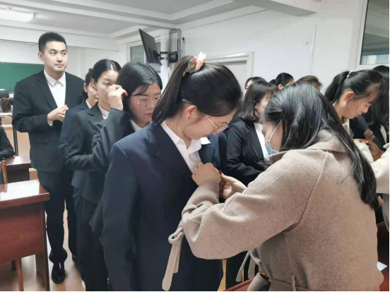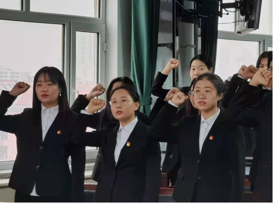 在入党仪式上,培养人为新入党的学生佩戴党徽,并进行了庄严肃穆的入党宣誓。全体党员热血沸腾,为能光荣加入中国共产党感到无比幸福,纷纷表示在今后的学习生活中,始终以党员的标准严格要求自己,成为社会主义的合格建设者和接班人。