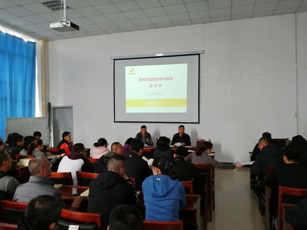 4月1日,体育学院党史学习教育读书班开班。体育学院全体教职工党员、学生党员参加了第一次集中学习辅导。