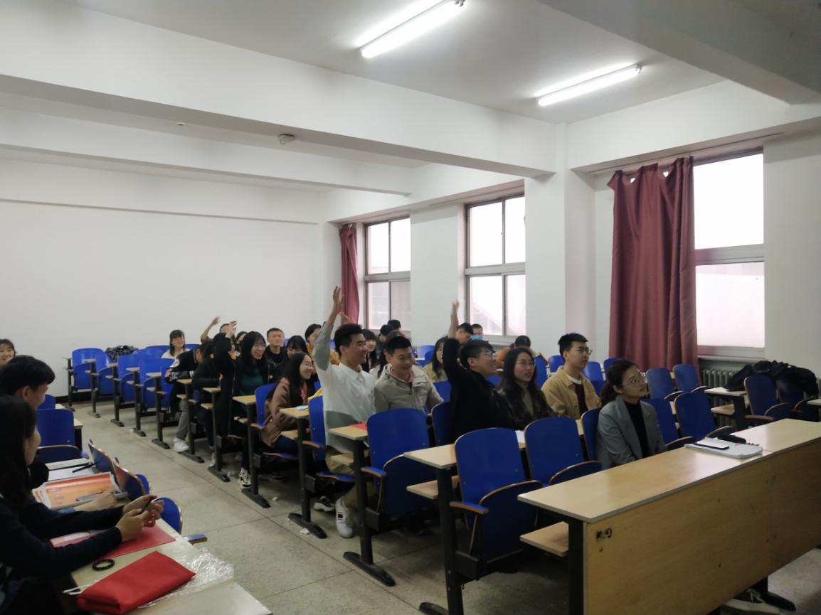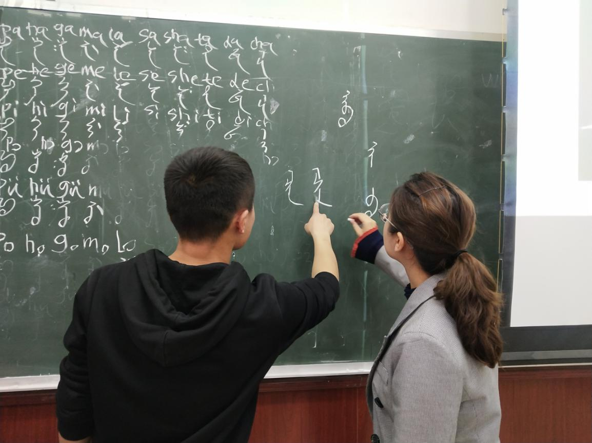 蒙古族同学呼木吉乐为大家教学讲述了蒙古文中的元音和辅音以及简单的蒙语,激发了老师和同学们浓厚的学习兴趣。